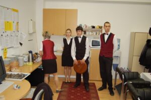 O hostí sa vzorne starali naši žiaci III. B, II. KČ a IV. KČ triedy pod vedením pani Daubnerovej a pani Krošlákovej. Majsterky cukrárky vedené Ing. Bačovou a samozrejme majster kuchár Babušek pripravili úžasné občerstvenie.
