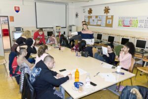 Žiaci formou projektového vyučovania vytvárali v skupinách plagáty a videá na tému, ktorú si na začiatku dňa vyžrebovali. Všetky témy sa týkali rôznych foriem závislostí a musím Vám povedať, bolo sa teda na čo pozerať. Svojich tém sa zhostili naozaj veľmi dobre a vznikli nápadité plagáty, ktoré zdobia chodby školy a videá, ktoré boli uverejnené aj na facebookovej stránke školy. Tam prebiehalo hlasovanie o najlepšie video. Formou páčikov mohli ľudia ohodnotiť videá, ktoré sa im páčili. V tejto súťaži vyhrala trieda II. HA s počtom 327 páčikov a s vyše 7 tisíc pozretí. Video, ktoré sa najviac „páčilo“ bolo, paradoxne, na tému Závislosť na vzhľade 🙂