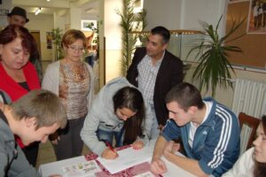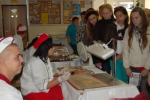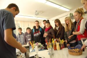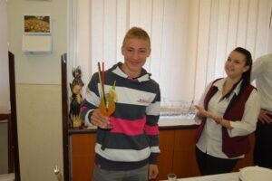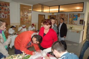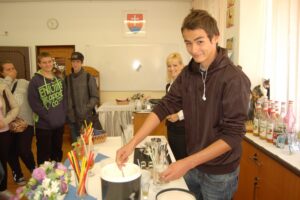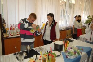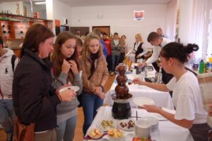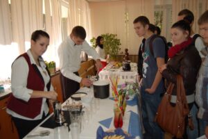 Počas dňa otvorených dverí sme budúcim žiakom ukázali interiér školy, ukážky z vyučovacieho procesu, odborné učebne, dielne (cukrárska, kuchyňa, stolovňa). Tiež v odbornej učebni administratívy a korešpondencie im výchovná poradkyňa Ing. Brigita Šuhajdová bližšie predstavila jednotlivé odbory za pomoci prezentácie školy. Budúcim žiakom našej školy sme tiež ponúkli ukážky výrobkov našich odborov kuchár, čašník, cukrár, pekár, mäsiar.