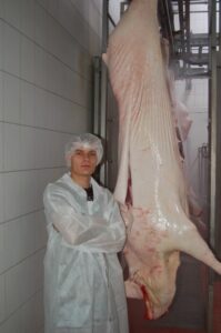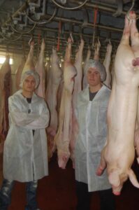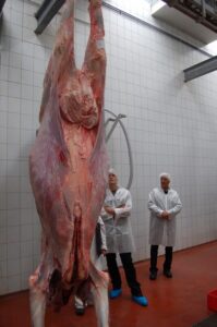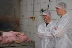 Žiakom bol opäť umožnený veľmi blízky kontakt s pracovníkmi, ktorí vykonávali jednotlivé technologické operácie porážania hovädzieho dobytka: omráčenie, vykrvenie, oddelenie hlavy, rohov a hnátov, ďalej stiahnutie kože, vykolenie, polenie, celková toaleta hov. polovičky a následná veterinárna prehliadka s konečným kvalitatívnym zaradením do akostnej triedy.