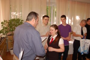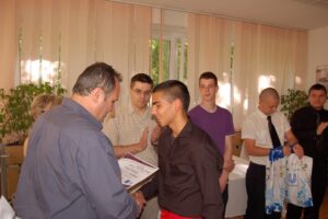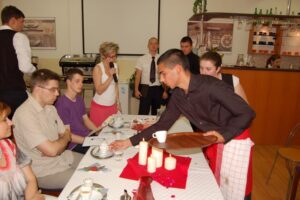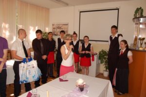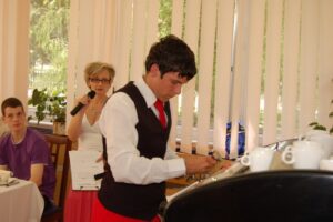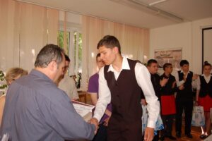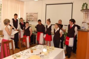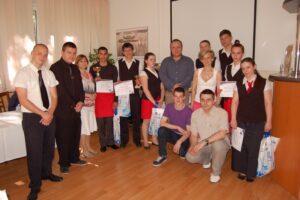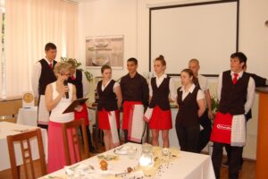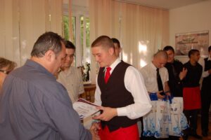 Cenu za najlepšiu profesionálnu prezentáciu „PUTOVNÝ POHÁR RIADITEĽA ŠKOLY“ získal Dominik Bolf z III.B triedy, učebný odbor čašník, servírka.