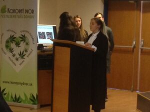 Je to skvelé, keď vám ľudia tlieskajú. Zvlášť, keď ide o odborníkov na tému, prezentujete. A ešte potom sa za vami zastaví pán štátny tajomník z ministerstva, aby vám pogratuloval k výbornej prezentácii. 😉 Takto to vypálilo, keď sme na medzinárodnej konopiarskej konferencií v Nitre prezentovali naše SOČkárske projekty – Hospodárske využitie konopy siatej a Konopný catering. Claudia, Samuel, Rebečka, Karin. Boli ste skvelí. Konopný dvor, ďakujeme za pozvanie.