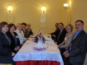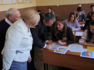 Delegácia našej školy sa zúčastnila oficiálneho prijatia za účasti pedagógov a zamestnancov Ľvovskej partnerskej školy. Program pokračoval prehliadkou školy a diskusiami s jej odbornými zamestnancami a stretnutím s pánom Romanom Voronyakom, zástupcom vedúceho útvaru odborného technického vzdelávania Ministerstva školstva a vedy Ľvovského regiónu. Pán Voroniak ocenil nadväzovanie medzinárodnej spolupráce odborných škôl Ľvovského regiónou a osdnorných škôl Bratislavského samosprávneho kraja. Spolu s pánom riaditeľom Horákom skonštatovali, že odovzdávanie medzinárodných skúseností škôl a ich žiakov je výborný príspevok k rozmanitosti odborného vzdelávania obidvoch regiónov a k získavaniu skúseností a odborného sebavedomia žiakov. V závere návštevy, na stretnutí pedagógov z Ľvova a Bratislavy sme dohodli základné princípy odborných stáží s výmenou žiakov, ktorá bude zameraná na prenos skúseností, budovanie odborných zručností a spoločnú účasť v súťažiach a projektoch odborného vzdelávania a prípravy.
