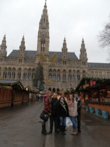 Vyrazili sme o 7:45 z parkoviska pri Bille. Po príchode do Viedne sme boli rozdelení do skupín podľa svojich tried, každá skupina mala svojho vedúceho. Exkurzia prebehla podľa vopred stanoveného plánu – postupne sme navštívili priestory Starej radnice, kde sme mali možnosť vidieť a zažiť úžasnú atmosféru tvorivých dielní, taktiež výstavu rôznych regionálnych foriem betlehemov s jasličkami, vianočný trh pred radnicou s rázovitými stánkami, následne budovu parlamentu, vianočný trh na námestí Márie Terézie a napokon sme na známej Mariahilferstrasse mali možnosť pod dozorom pedagógov využiť svoje praktické znalosti nemeckého jazyka pri nákupoch darčekov a občerstvenia. Exkurziu sme zakončili v nákupnom centre Huma.