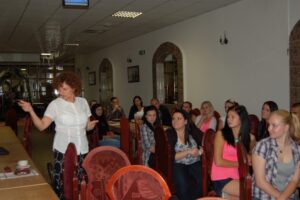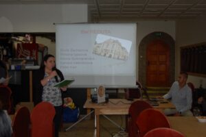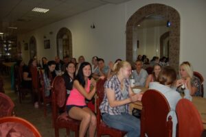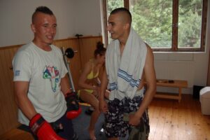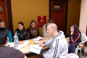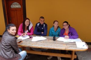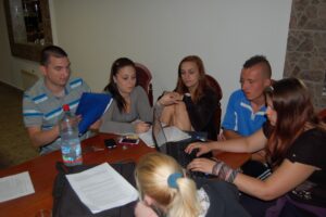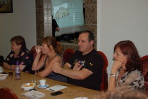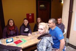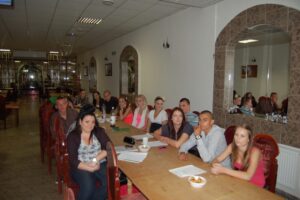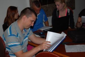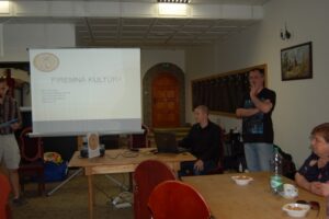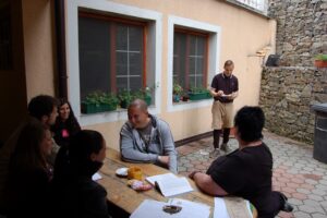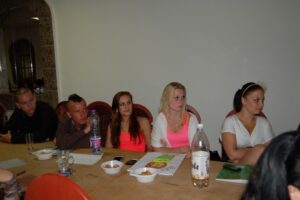 Okolo obeda už bola 3.MA rozdelená do skupín, skupiny mali svojich šéfov a šéfovia dostali pracovné pomôcky a zadania prác. Vonku vyšlo slnko. Zároveň sa začali krúžky. Pani Andrea Marešová viedla po celý čas semináru krúžok, kde sa žiaci mohli poradiť, ako založiť s.r.o. Samozrejme žiakom radila aj v iných potrebných témach, prípadne im pripomenula učivo, ktoré sa z hlavičiek vyparilo. Podobne začal krúžok s témou verejná prezentácia. Tu som ja trápila mladých kamarátov verejným prednesom. Skúšali sme obabrať trému a učili sme sa ostatné potrebné finty, aby prezentácie mohli byť zaujímavé. A pán Matúš viedol krúžok, ktorý pripomínal ako na podnikateľský plán, čo s marketingovou stratégiou a ako vyzrieť na marketingové analýzy. Všetky pracovné skupiny prežili prvé dva dni semináru prípravou prezentácií, konzultáciami v krúžkoch a voľnou diskusiou s Mišom. Mišo – absolvent našej školy – sa dnes pripravuje na diplomovku a prišiel sa k nám pozrieť ako sa robí zážitkové a projektové vzdelávanie. V neposlednom rade sme všetci veľa športovali a oddychovali na slniečku.