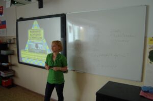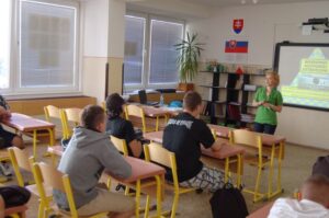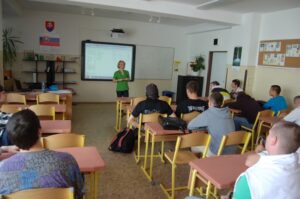16. mája 2012 sa uskutočnila prednáška Mgr. Karolíny Tobiašovej na tému Pomoc obetiam obchodovania s ľuďmi pre žiakov I.A a I.B triedy. Prednášajúca zaujímavým a poučným spôsobom informovala žiakov o príčinách tohto novodobého otroctva. Pri obchodovaní s ľuďmi dochádza k zneužívaniu ľudí inými osobami. Obchodované osoby sú držané pod vyhrážkami alebo fyzickým násilím na nejakom často od domova vzdialenom mieste alebo v cudzine, sú nútené k práci, ktorú by dobrovoľne nevykonávali, alebo v podmienkach, ktoré by pre ne boli za normálnych okolností neprijateľné. Často sa stáva, že za prácu nedostávajú žiadnu alebo len minimálnu mzdu, musia pracovať dlhé hodiny bez možnosti odpočinku, s minimálnym prísunom stravy. Súčasne im dala rady a odporúčania ako sa vyvarovať rôznych pochybných ponúk a nenaletieť podvodníkom zneužívajúcim ľudskú dôverčivosť a ich túžbu zamestnať sa.