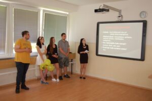 V spolupráci s pánom Matúšom sme vypracovali 4 zadania – Reduta – podnikateľský plán, Ako spropagovať hl. mesto Bratislava doma alebo v zahraničí, Firemná kultúra – imidž školy, Huawei – uvádzacia kampaň produktov spoločnosti – smartfóny, tablety, ktoré boli orientované hlavne na marketing. Žiaci sa museli sami skoordinovať, čo mali na starosti najmä lídri skupín (šéfovia). Žiaci mali obmedzený čas na vypracovanie zadania, a to necelé 2 dni. Keďže seminár bol spojený s povinným KNOŽaZom. V deň D, kedy žiaci mali prezentovať vypracované zadania pred porotou. Do poroty prijali pozvanie pán riaditeľ Jozef Horák, vedúca siete CVF na Slovensku pani Gabriela Horecká. Porota bola doplnená pánom Matúšom a mnou.