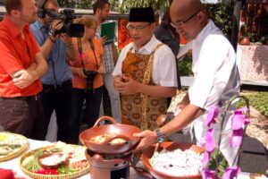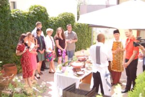 Dňa 2. júla 2013 sa v rezidencii veľvyslanca Indonézskej republiky Djumantora Purwokoputra Purba varili tradičné jedlá Indonézskej kuchyne pre denník SME, časopis The Slovak Spectator. Na pozvanie pána veľvyslanca sa tejto akcie zúčastnili aj zástupcovia našej školy spolu s vybranými žiakmi študijného odboru kuchár: Tomáš Košírer, Martin Berník, Liliana Huaová, Lenka Lelkešová a študijného odboru pracovník v hoteliérstve a cestovnom ruchu Laura Jirkovská. Pán veľvyslanec nás privítal už ako svojich priateľov v tradičnom indonézskom odeve.