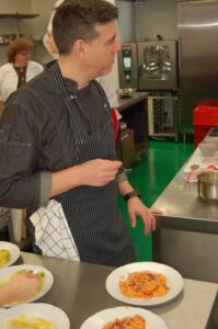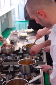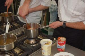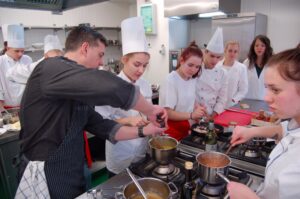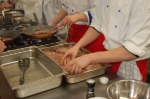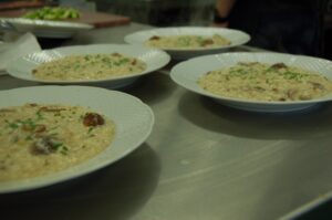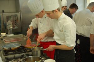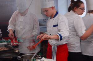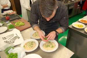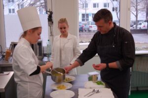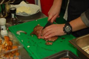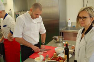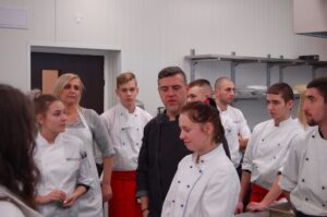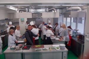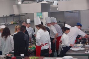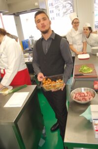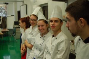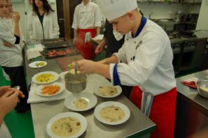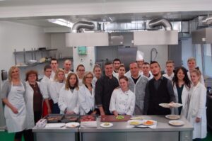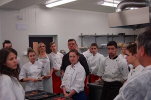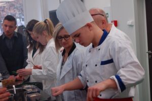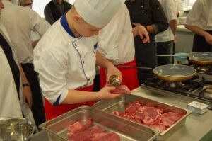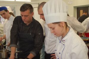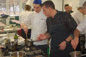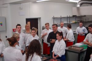 Variť s jedným z najlepších šéfkuchárov na Slovensku je veľká česť a škola. Nielen pre našich majstrov odborného výcviku, ale hlavne pre našich žiakov. Vďaka partnerskému programu s Medusa Group mohli naše kuchárske talenty absolvovať workshop šéfkuchára Martina Korbeliča, ktorý si pripravil zopár prekvapení zo sveta modernej gastronómie. A čo je najlepšie, chcel naše talenty vidieť priamo v akcii. Ako povedal Martin Korbelič: „Svet gastronómie je úžasne bohatý a je ťažké vybrať, čo mladým ukázať, ale…”. Ale predsa si Martin pre nás pripravil ukážky rôznych druhov mäsa; hovoril, aké druhy mäsa sú najlepšie na steaky a prečo a ako ho dobre pripraviť. Už len keď o tom rozprával, tak poniektorým z nás tiekli slinky. Okrem mäsa nám predstavil aj talianske krémové rizoto v rôznych kombináciach – paradajkové so slaninkou, šafranové so špargľou alebo hubové z rôznych druhov húb (napr. šitake). Samozrejme to neostalo pri teoretizovaní. Martin Korbelič nie je žiadny teoretik. A predsa, prax je najlepšou učiteľkou. V kuchyni to žilo, z hrncov sa parilo, mäsko sa pieklo, rúra pípala a práca išla každému od ruky. Bolo skvelé sledovať profíka pri akcii a zároveň vidieť, ako odovzdáva cenné rady našim žiakom a usmerňuje ich.