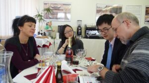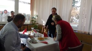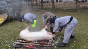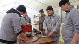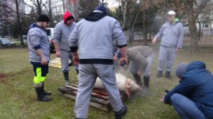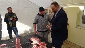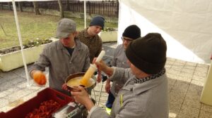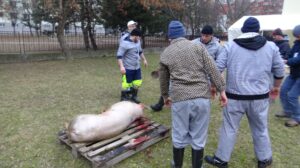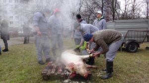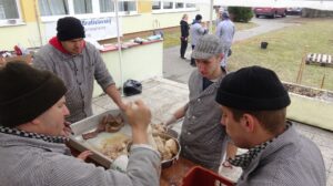 Tohtoročnú zabíjačku poctili svojou účasťou aj predstavitelia BSK, zástupcovia cechov a profesných organizácií. Nechýbali ani zástupcovia zahraničných zastupiteľstiev, s ktorými pán riaditeľ rokoval o ich účasti na našom úspešnom cykle Medzinárodné kuchyne v SOŠ gastronómie a hotelových služieb.