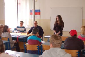 Predsedníčka Laura Jirkovská na úvod priniesla informácie z posledného zasadnutia Mestského parlamentu mladých a zároveň navrhla pre budúci školský rok, v ktorom maturuje, za predsedu Christiána Branického, terajšieho podpredsedu a za jeho zástupcu Filipa Slobodu.