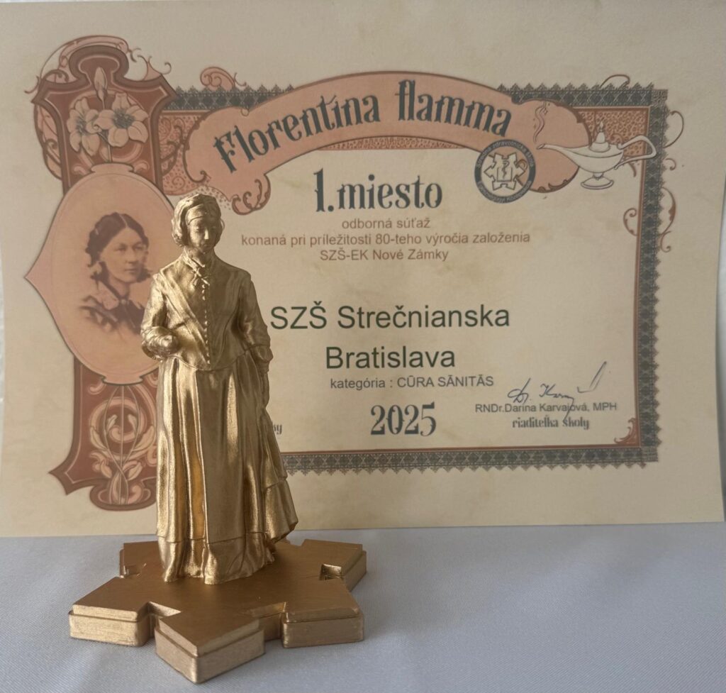 S hrdosťou oznamujeme, že žiačky Strednej zdravotníckej školy Strečnianska 20 v Bratislave – Daniela Skalová a Lenka Bachorová dosiahli v kategórii Cura caritas výnimočný úspech – 1. miesto. Ich výkon bol dôkazom kvalitnej prípravy, zanietenia a schopnosti aplikovať vedomosti v praxi. Srdečne im blahoželáme a ďakujeme za skvelú reprezentáciu školy.
